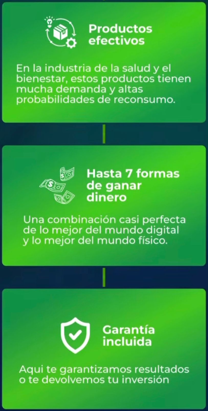 ¡O mejor aún, combina las tres opciones! Tú tienes el control. Solo dame la oportunidad de mostrarte este negocio espectacular que está esperando por ti. ¿Te animas?